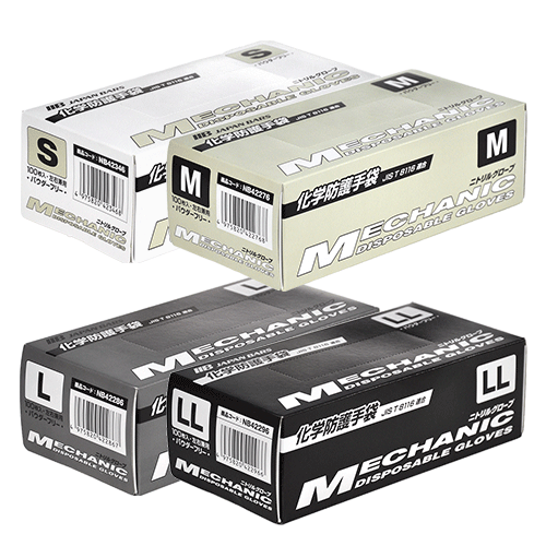 メカニック用グローブウロコ状のエンボス加工により、グリップ性に優れたグローブです。一般的な使い捨てグローブに比べて厚手ですので、オイル交換等のハードな作業に適しています。(黒・パウダーフリー)